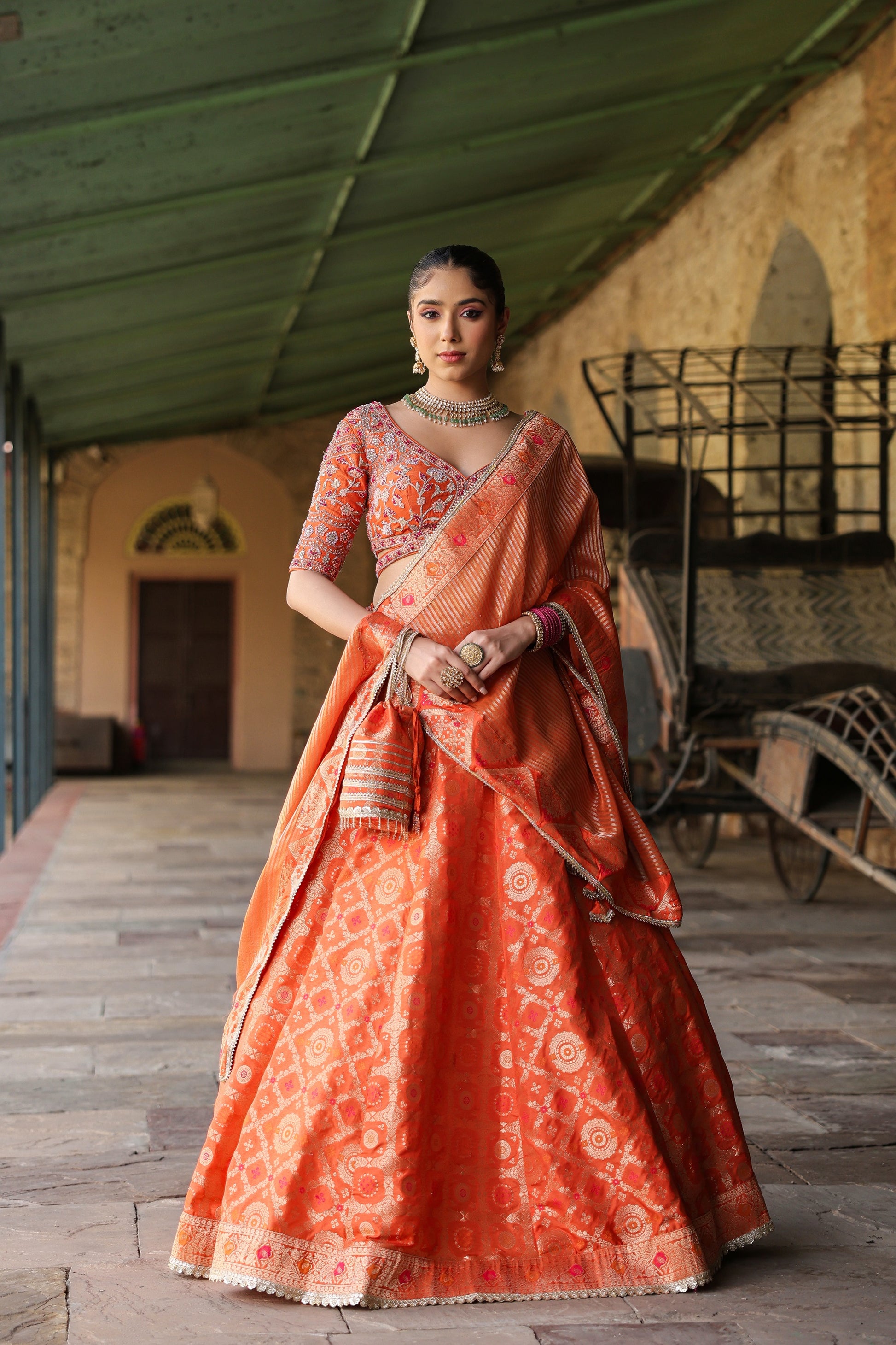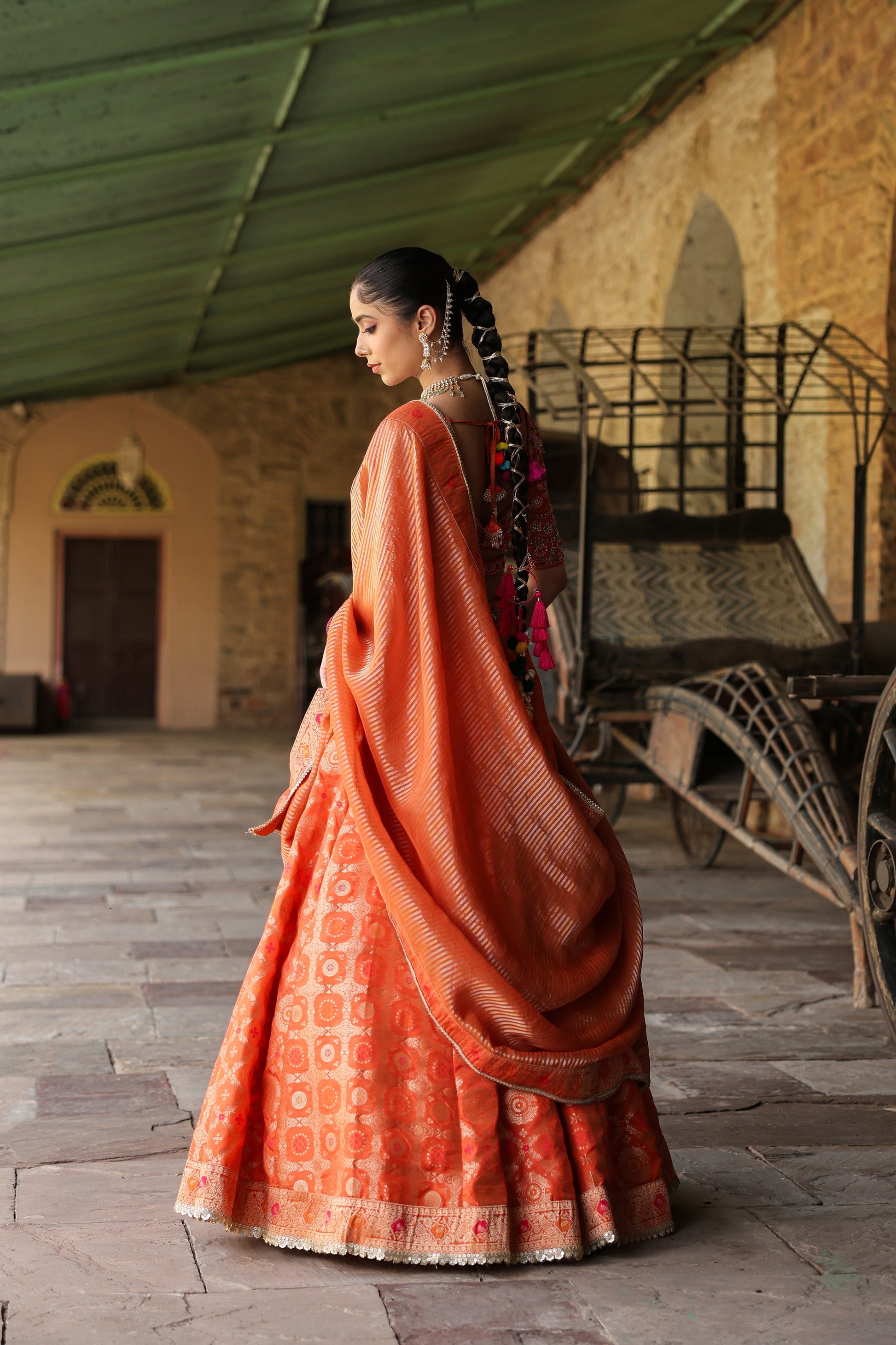 - The Set Includes An Organza Zari Woven Dupatta With A Floral Zari Border And Gotta At The Hem.