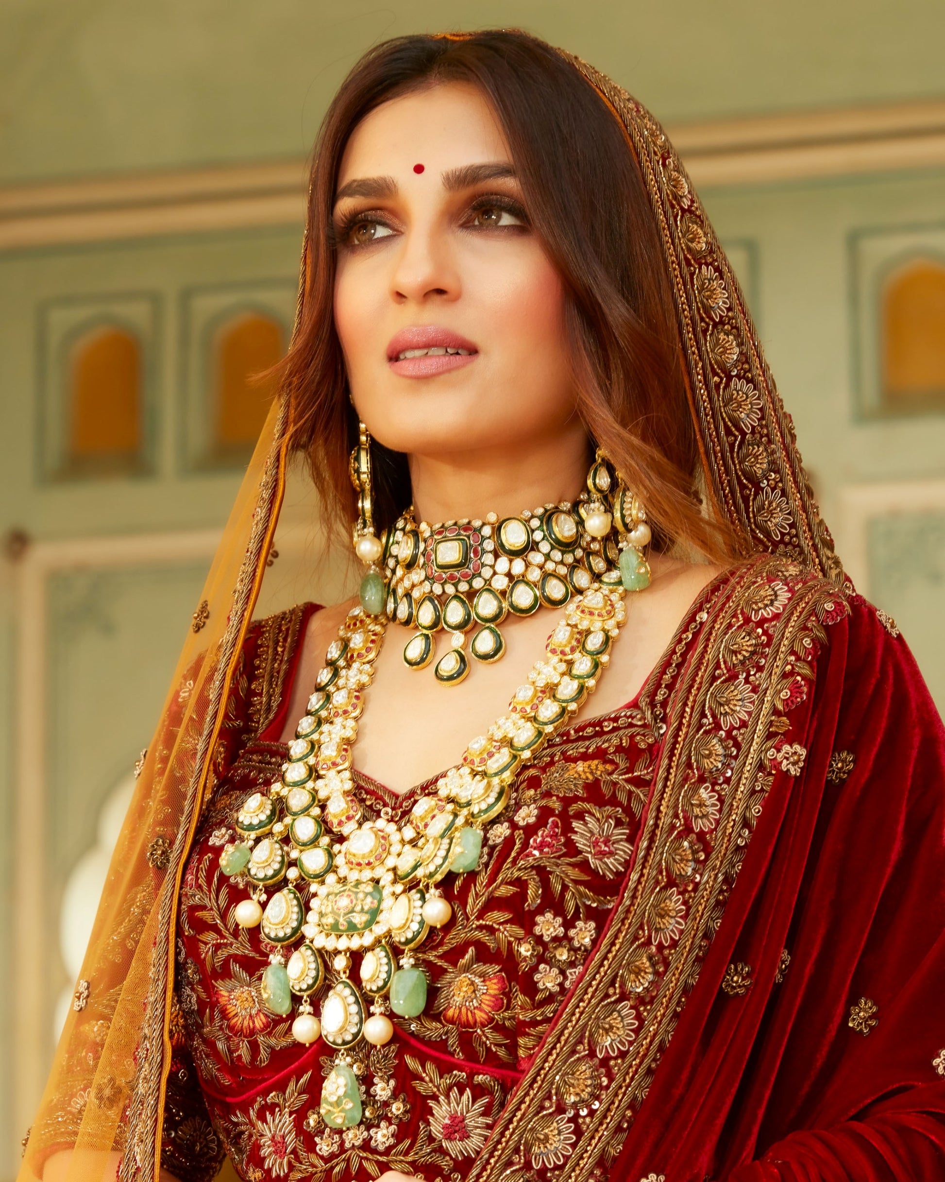 - The Lehenga Has Highlights Of Velvet Fabric In Maroon And Green Colour On It Having Embellishments On It.