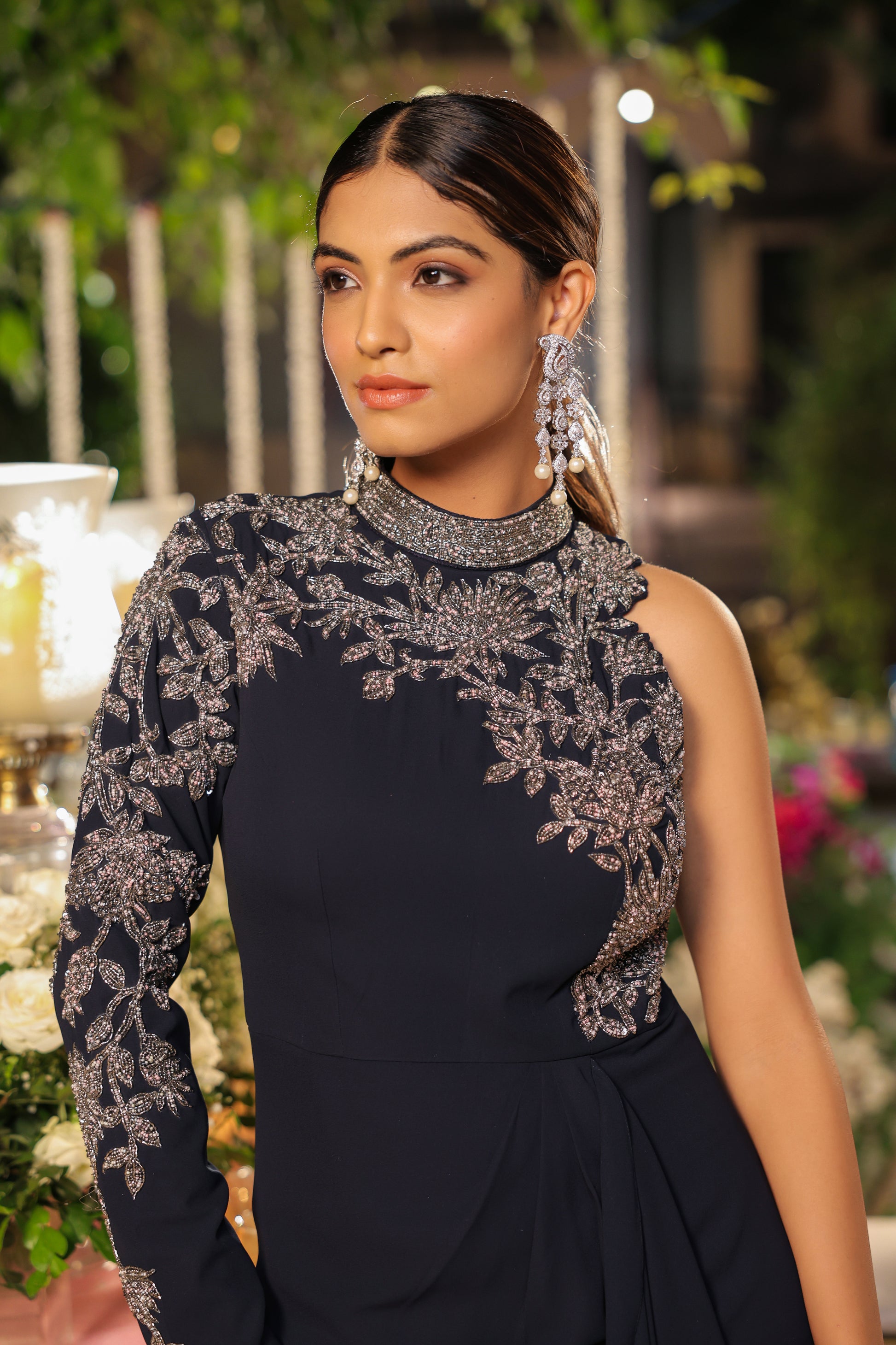 • Midnight Blue Georgette Gown Have Turtle Neck.