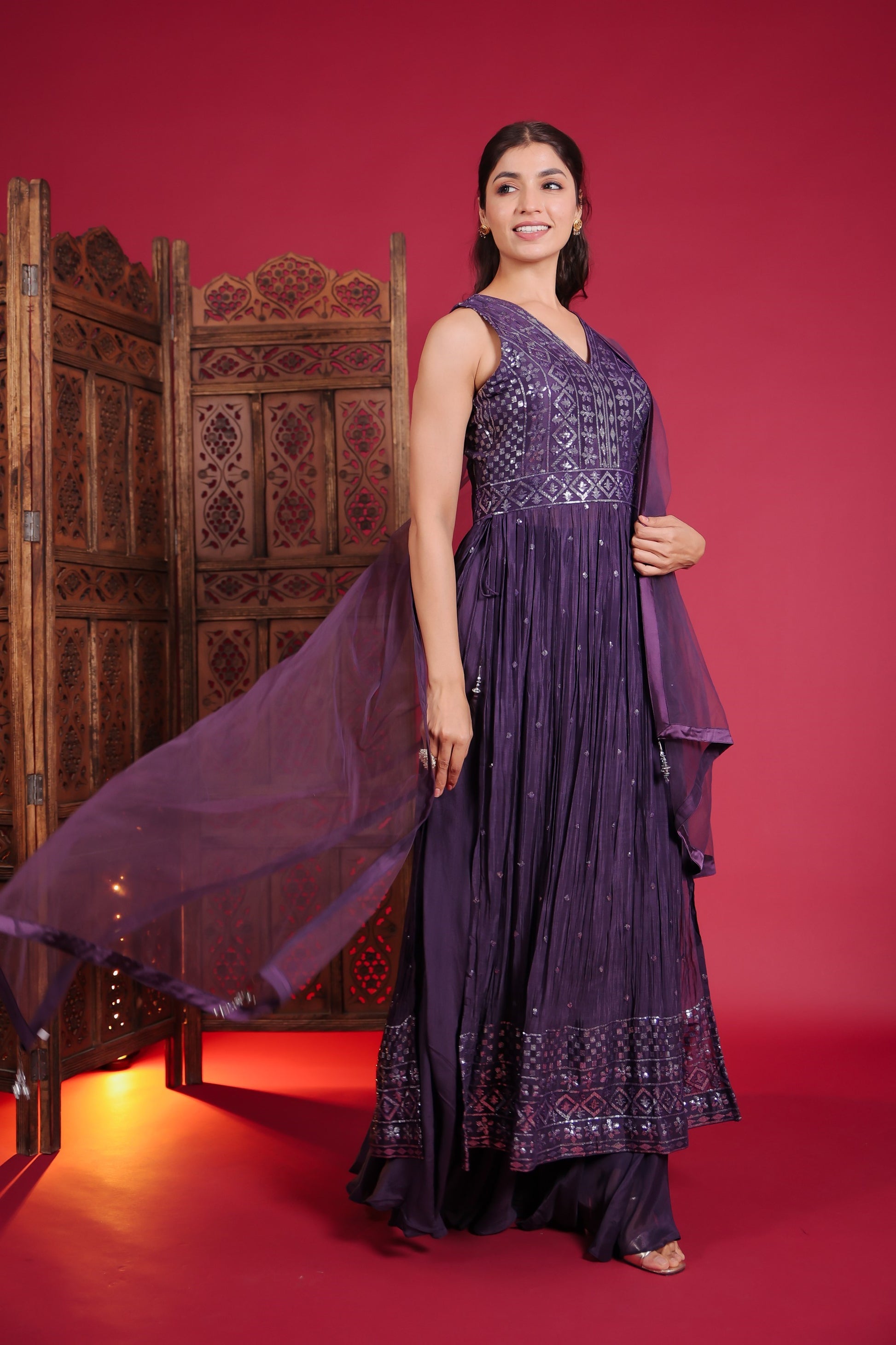 - Violet Sequin Embellished Side Slit Padded Kurta.
